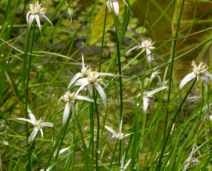 Sedge herbáceo; domina microhábitats húmedos, reproducción por aquenio (semillas).